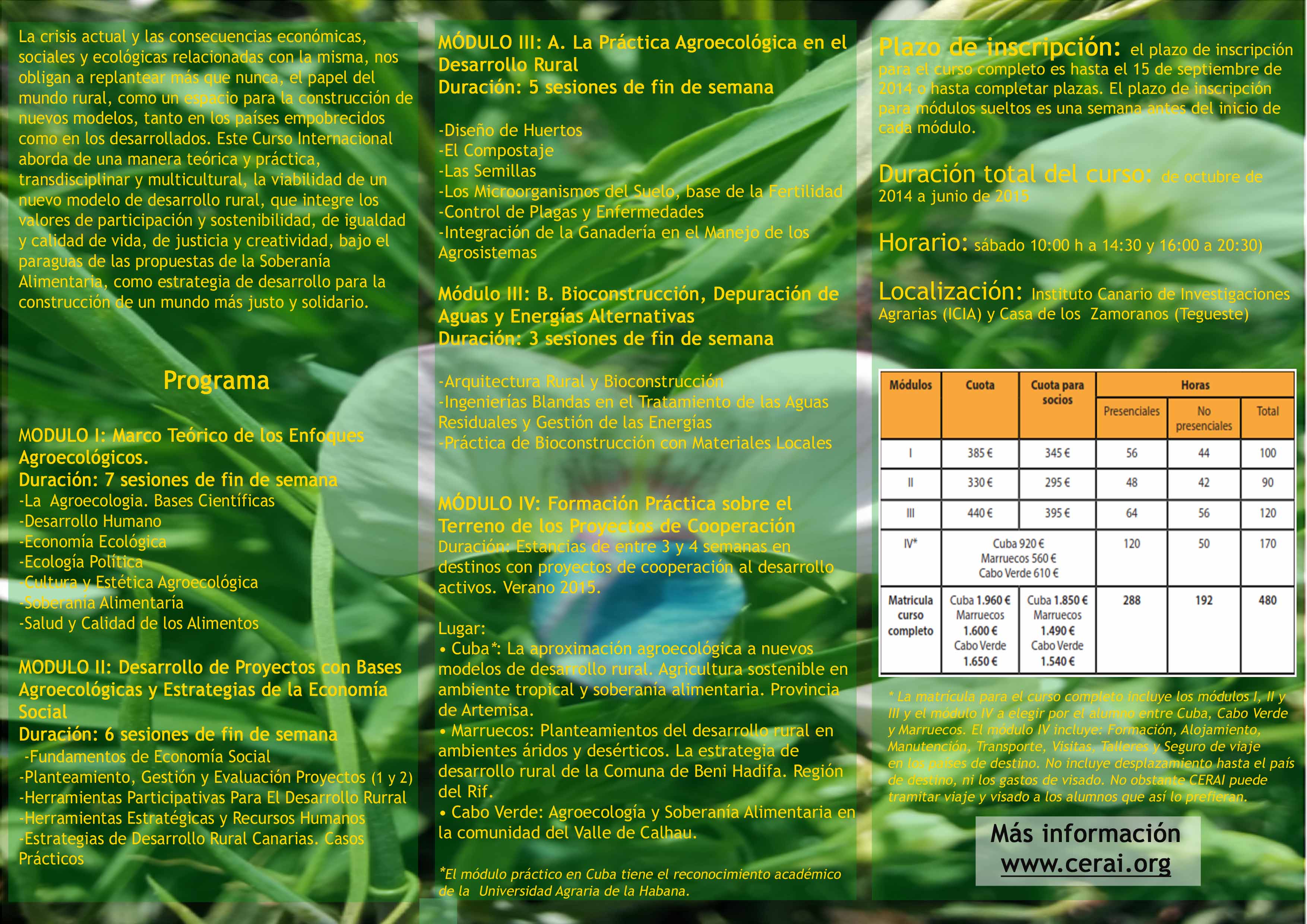 Curso Internacional: Agroecología, Soberanía Alimentaria y Cooperación al Desarrollo Rural. Tenerife. De octubre de 2014 a junio de 2015