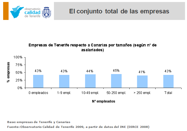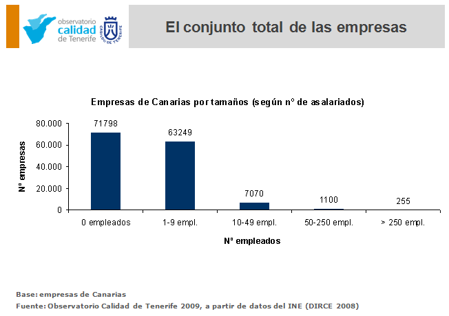 Empresas de Tenerife y Canarias clasificadas por números de trabajadores, según datos del INE (DIRCE 2008).