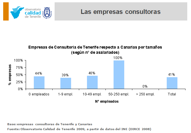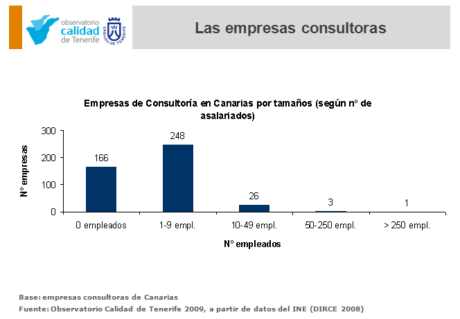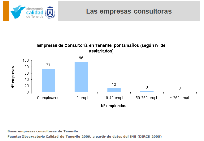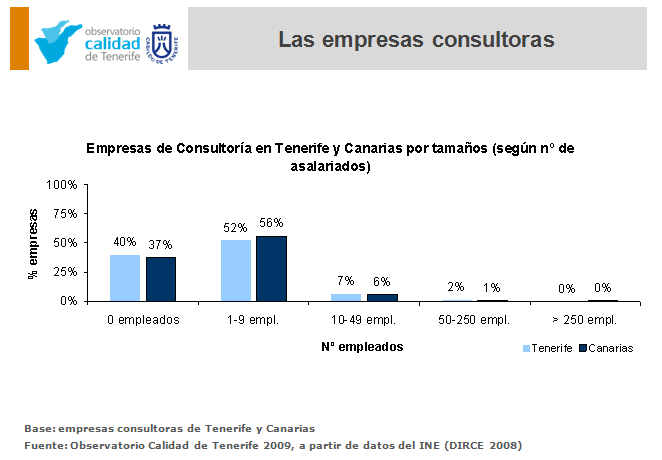 Consultoras de Tenerife y Canarias clasificadas por números de trabajadores, según datos del INE (DIRCE 2008).