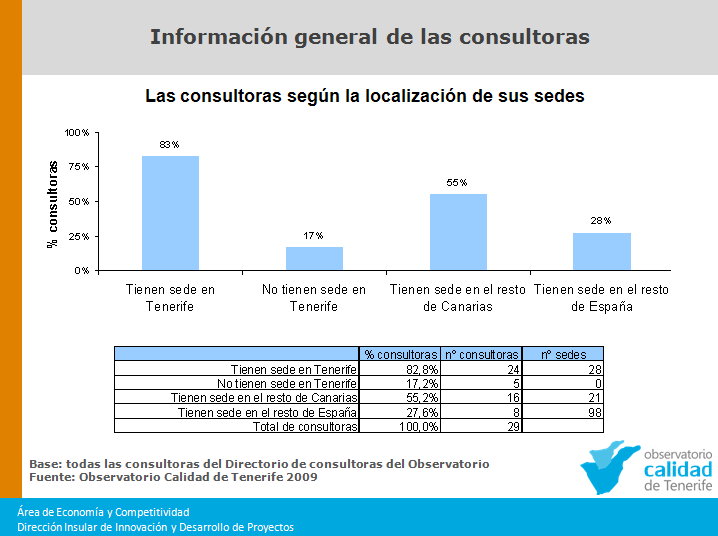 Localización de las sedes de las consultoras que realizan activadades en Tenerife, según los datos del estudio del directorio de consultoras del Observatorio de la Calidad de Tenerife.