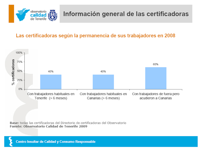Localización de los trabajadores de las certificadoras que realizan su actividad en Tenerife, analizando la permanencia en la empresa, según los datos del estudio del Directorio de certificadoras del Observatorio de Calidad de Tenerife.