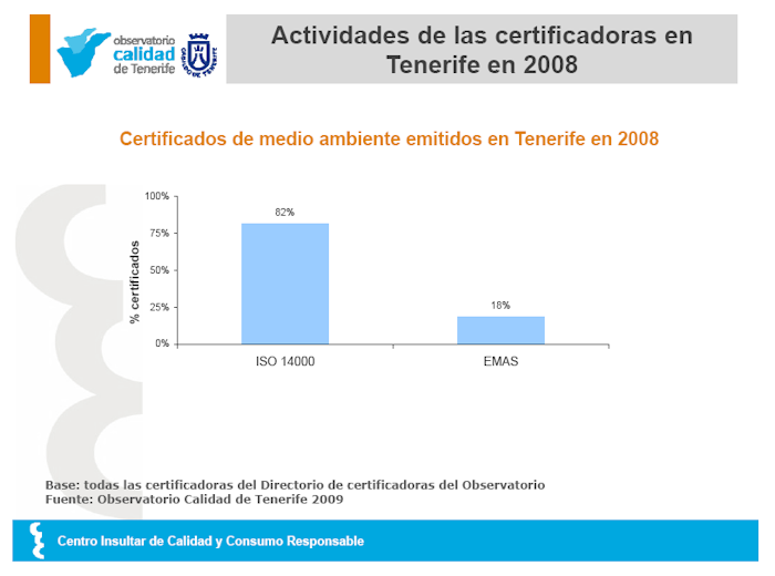 Certificados de medio ambiente emitidos en Tenerife, según los datos del estudio del Directorio de Certificados del Observatorio de Calidad de Tenerife.