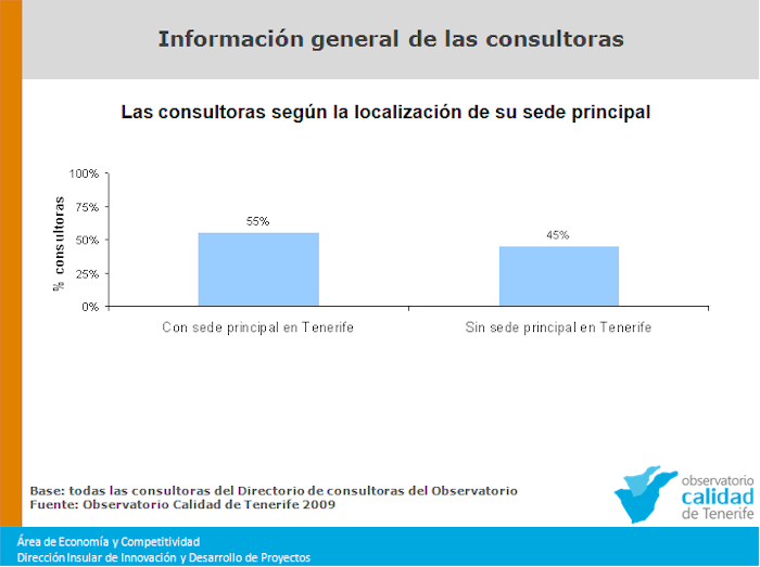 Localización de la sede principal de las consultoras que realizan actividades en Tenerife, según los datos del estudio del Directorio de Consultoras del Observatorio de la Calidad de Tenerife.
