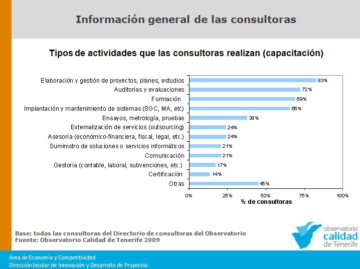 Identificación de los tipos de actividades que las consultoras realizan (capacitación), según los datos del estudio del Directorio de Consultoras del Observatorio de la Calidad de Tenerife.