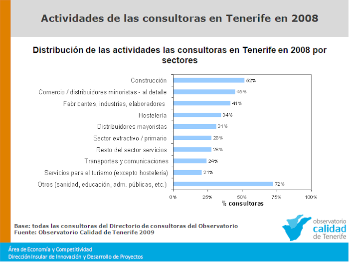 Distribución de las actividades de las consultoras en Tenerife, según los datos del estudio del Directorio de consultoras del Observatorio de la Calidad de Tenerife.