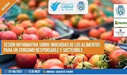 El próximo lunes 7 de junio a las 12:00h tendrá lugar, de forma telemática, un webinar sobre Inocuidad de los Alimentos para un consumo responsable y sostenible, organizado por el Cabildo de Tenerife.